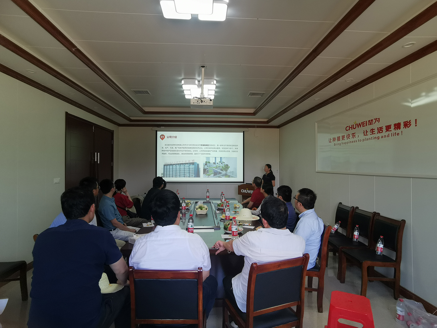 在楚为基地会议室,植物科学技术学院种子科学工程专业的何菡子老师以“漫谈种业现状”为题系统介绍了目前国内外种业发展现状。楚为公司李艳从技术研发与服务、产品优势与市场前景、企业文化与规划等方面介绍了蔬菜种业产业化发展情况。青年教师们围绕如何加强生物种业发展、做原创性科学研究、推进产教研融合发展等展开了热烈讨论,并表示应多走出实验室去深度了解产业需求,以此次活动为契机,进一步开展跨学科交流与合作,做出符合国家战略需要和人民期望的“农业中国芯”。