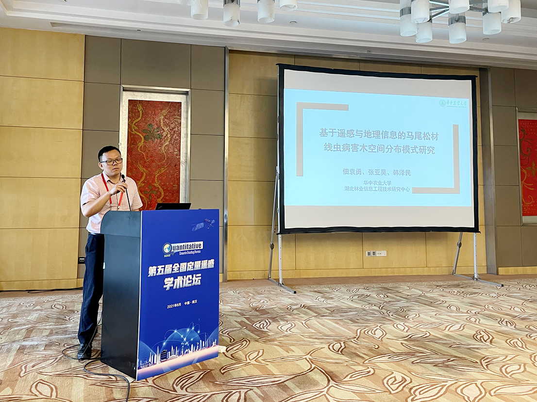 本届论坛共开设了26个分会场和一个海报展览区,我校资源与环境学院孟冉教授与十大网投正规官网佃袁勇副教授和共同承担了“森林干扰遥感监测与预警“分会场召集与主持工作。该分论坛邀请了北京林业大学黄华国教授、中国林科院庞勇研究员、福建师范大学陆灯盛教授、西南林业大学寇卫利教授等国内外知名学者做了精彩报告。清华大学、南京大学、华中师范大学、安徽大学、西南林业大学、南京林业大学、内蒙古工业大学等大学参加该分论坛,针对森林虫害、火灾、采伐等扰动,围绕遥感技术提取扰动信息、评估生物量变化等方面做了精彩报告。佃袁勇与孟冉老师还针对森林病虫害遥感监测做了“基于遥感与地理信息的马尾松材线虫病害木空间分布模式研究”、“融合光谱和时序特征的南方松树甲虫(SouthernPineBeetle)虫害探测模型研究”的专题报告。佃袁勇老师的林业遥感课题组硕士研究生胡磊、胡月、张亚昊、刘晓阳也参加了此次论坛,并制作了题为“红边波段对北亚热带人工林择伐监测的响应分析”的海报展示。