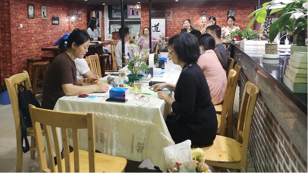 晚上在总工会组织下,王彩云老师也应邀参加了总工会文化宫在神农书屋组织的“一书一花一世界”读书分享与花赏体验活动。书友们来自神农架不同的岗位,各自推荐自己喜爱的书籍。王彩云老师给大家推荐了明代袁宏道的插花专著《瓶史》,并讲解了推荐该书的背景、其中的插花理论与插作要点。也希望神农架林区插花爱好者珍稀神农架植物多样性,利用乡土花卉,创作更多特色作品,享受美好生活。林区总工会党组书记,常务副主席龚军表示,“下一步,林区总工会将通过多种形式,定期开展系列活动,丰富精神文化生活,提升广大女职工身心健康。”