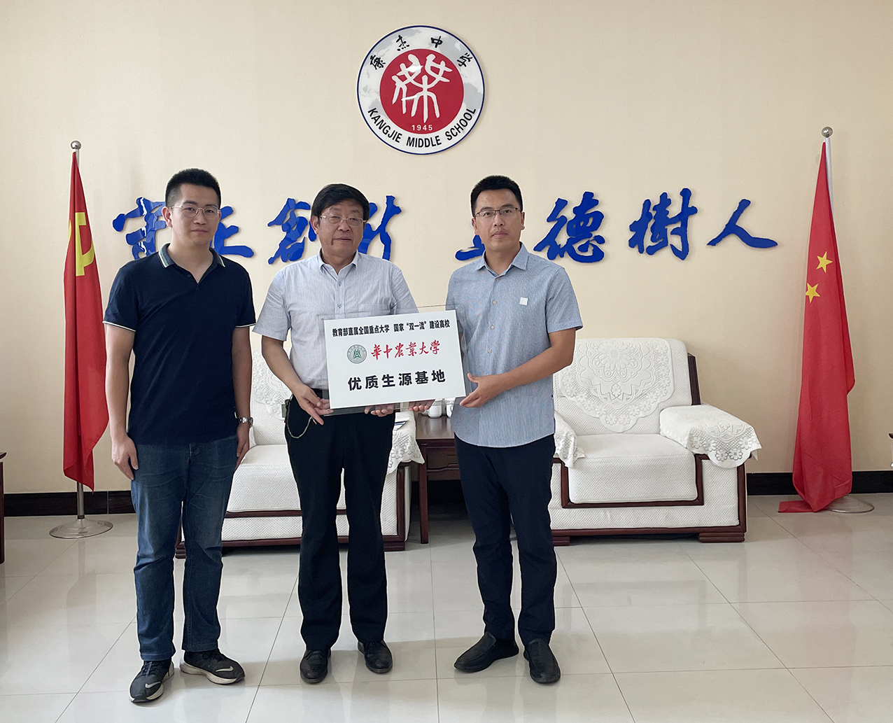 在康杰中学,双方就进一步加强两校之间的交流、服务学生成长成才达成一致意见。随后,解凯东介绍了我校的优势学科及科研成果,并以“勤读力耕,立己达人”的校训激励同学们。报告结束后,解凯东深情地讲道:“山西是我的家乡,希望学弟学妹们敢于面对困难,迎接挑战,脚踏实地、志存高远,为国家的农业事业贡献自己的智慧和力量。”