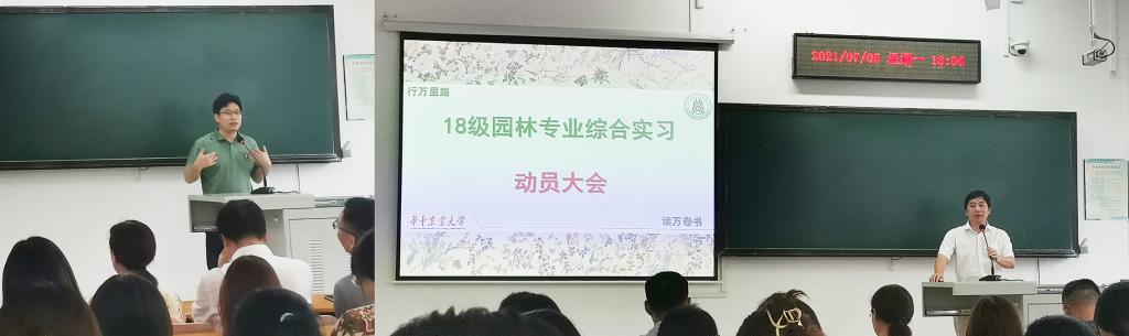 为增强学生实践技能,提高学生专业综合素养,2018级园林专业全体学生暑假将在武汉和北京进行为期20天的专业综合实习。会上,花卉方向的张俊卫老师、树木方向的向林老师和设计方向的章莉老师介绍了本次实习的目的与意义、实习地点、实习指导教师、实习任务、准备、要求、考核等相关内容。