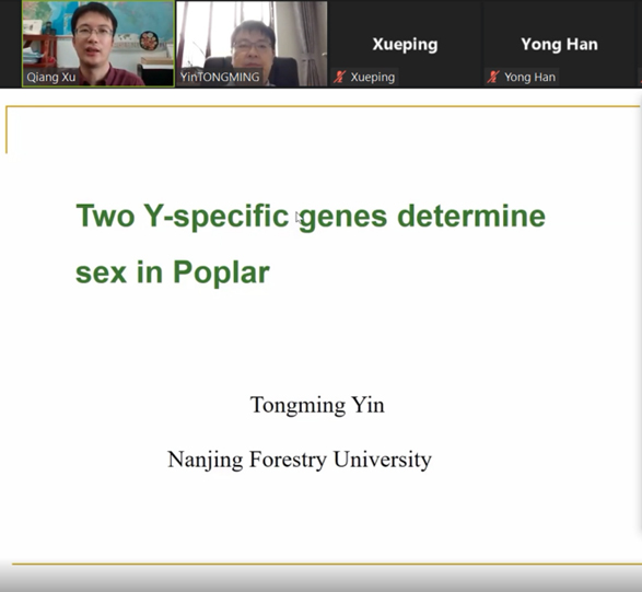研讨会上,来自南京林业大学的尹佟明教授围绕植物繁殖和物种进化中的性别决定这一有趣现象,讲述了在雌雄异株植物美洲黑杨(Populus deltoides)中,其Y染色单体近端的两个杂合基因位点FERR-R和MSL分别通过不同的调控机制触发性别分离的研究结果,指出Y特异性基因位点发生在杨柳科特有的全基因组复制事件之后,杨柳科物种性别决定具有独立的进化轨迹。