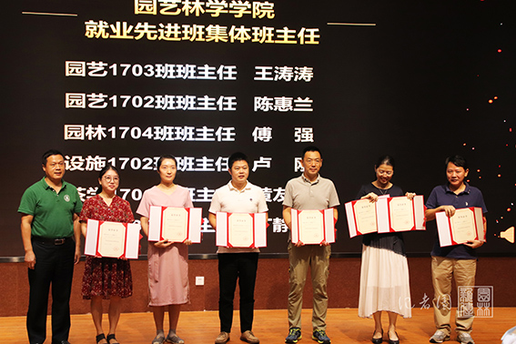 会上,学院还表彰了2017级升学先进班集体和就业先进班集体班主任。园艺1703班班主任王涛涛、园艺1702班班主任陈惠兰、园林1704班班主任傅强、设施1702班班主任卢刚、茶学1701班班主任黄友谊和园林1702班班主任丁静蕾获此殊荣。