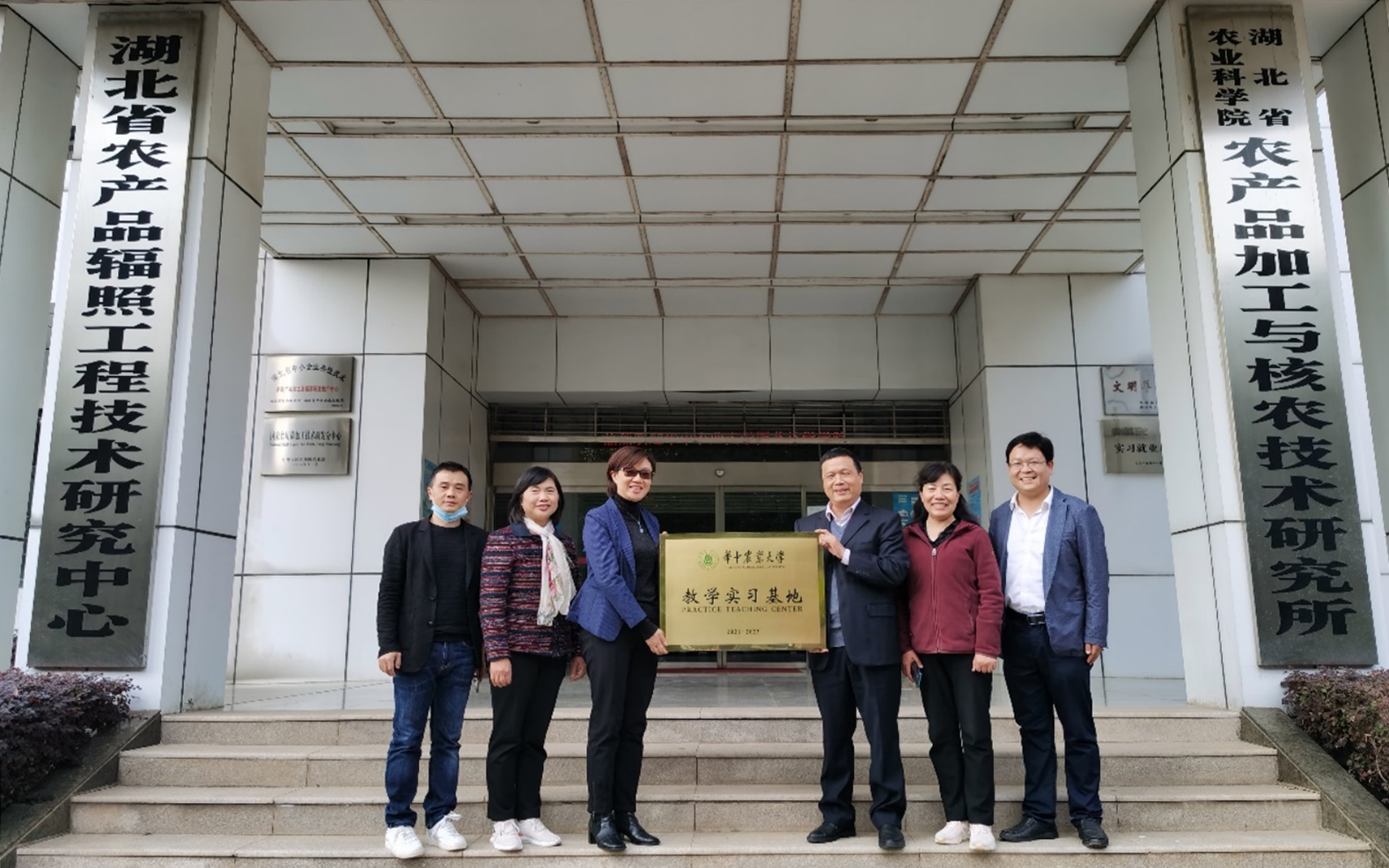 当前的“湖北省辐照实验中心”在80年代名称为“原子能应用研究所”,到2001年,更名为“辐照加工研究所”,在2006年,又更名为“农业产品加工与核农技术研究所”。在湖北省农业科学院及辐照实验中心历届领导和工作人员的关心指导下,这项持久的教学活动从未间断。从方祥亮书记到蔡芳副所长,还有张金术主任、邱建辉主任、夏和舟老师、陈玉霞老师等,他们曾先后为同学们传授专业知识和社会实践经验。在辐照车间内外,辐照中心的老师给同学们认真地讲解Co60γ-射线照射源的历史故事、使用原理、应用方法和多种功能。他们常常在大太阳下,一站就是1个多小时,并耐心地答疑问题。历年来,多次参加本课程教学的孙中海教授、姜玲教授、田振东教授、王涛涛教授和柴利军副教授每当谈到到辐照实验中心的教学经历,都无不为辐照实验中心领导和员工的敬业精神所感动。