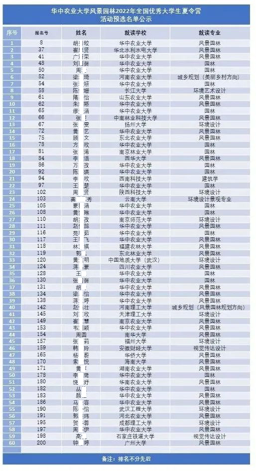 一、预选名单经学生申报、提交电子版材料(共收到有效报名材料200余份)、学科组织评审,现将澳门十大网投正规官网平台风景园林2022年全国优秀大学生线上夏令营营员预选名单公示如下。请名单中的同学8月10日12:00点前确认是否准时入营(https://jinshuju.net/f/l1AaEt)。如有放弃,将从有效报名名单中增补至60名,正式名单及具体日程安排将于10日晚公布。