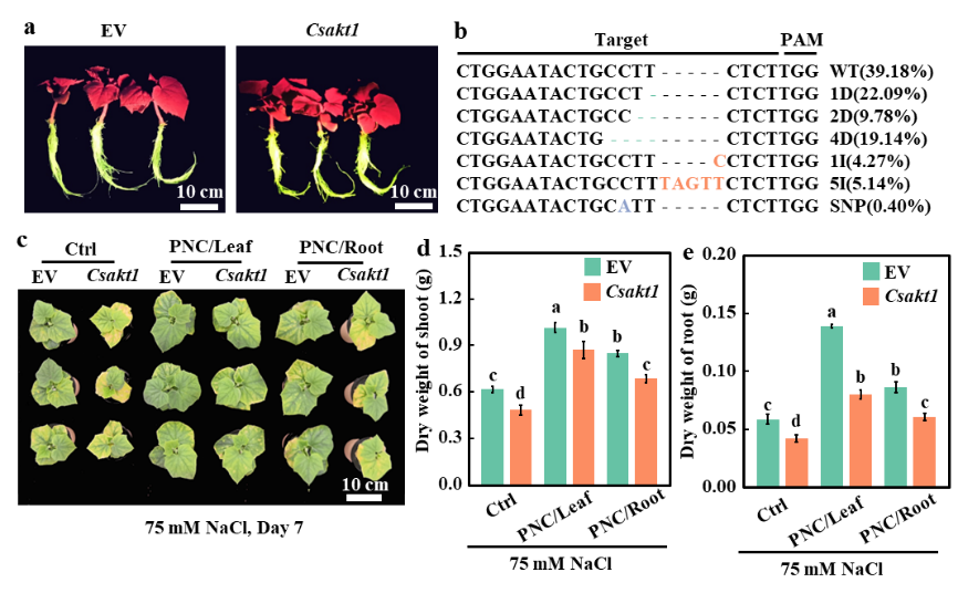 图4根系敲除CsAKT1对CeO2NPs提高黄瓜耐盐性的影响