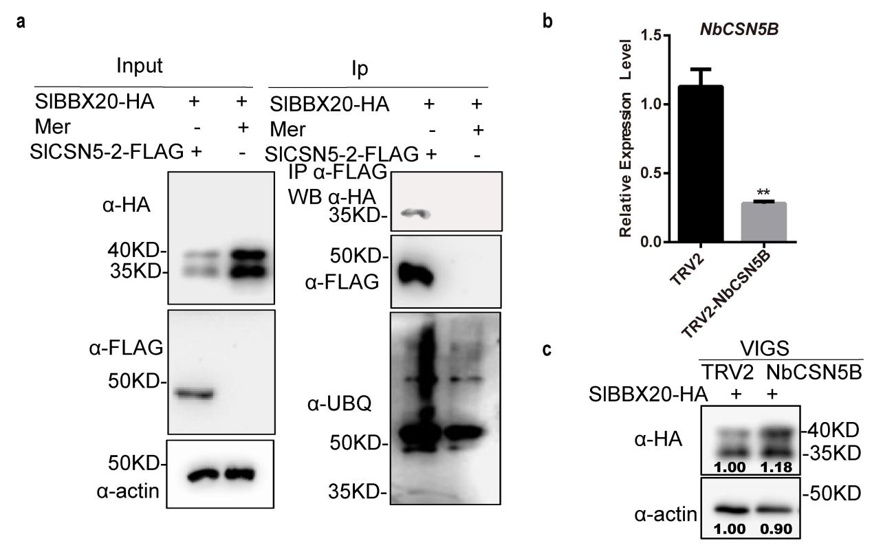 图3 SlCSN5-2调控SlBBX20蛋白的积累