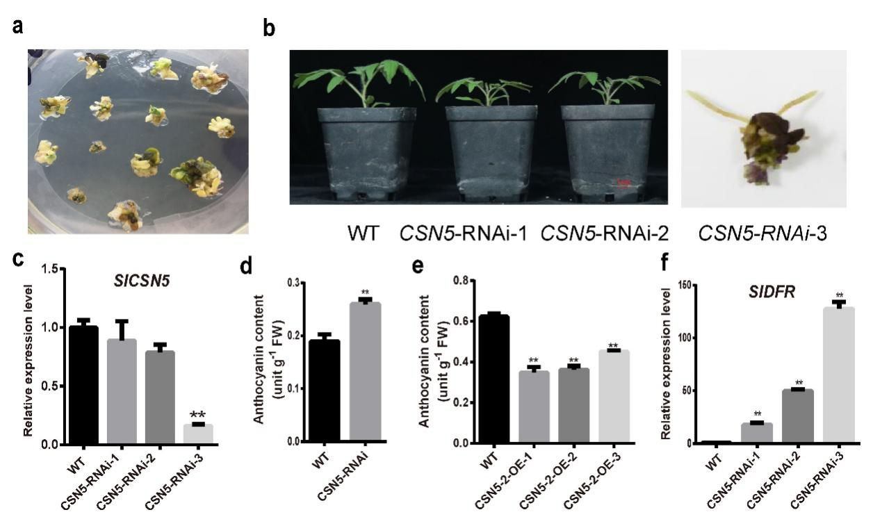 图2 SlCSN5-2 负调控番茄花青素的积累