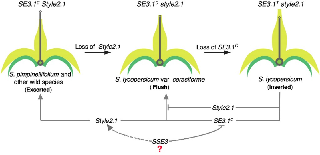 番茄柱头外露到内缩的由Style2.1和SE3.1依次分两步演变