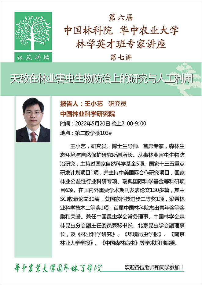 【林苑讲坛】天敌在林业害虫生物防治上的研究与人工利用