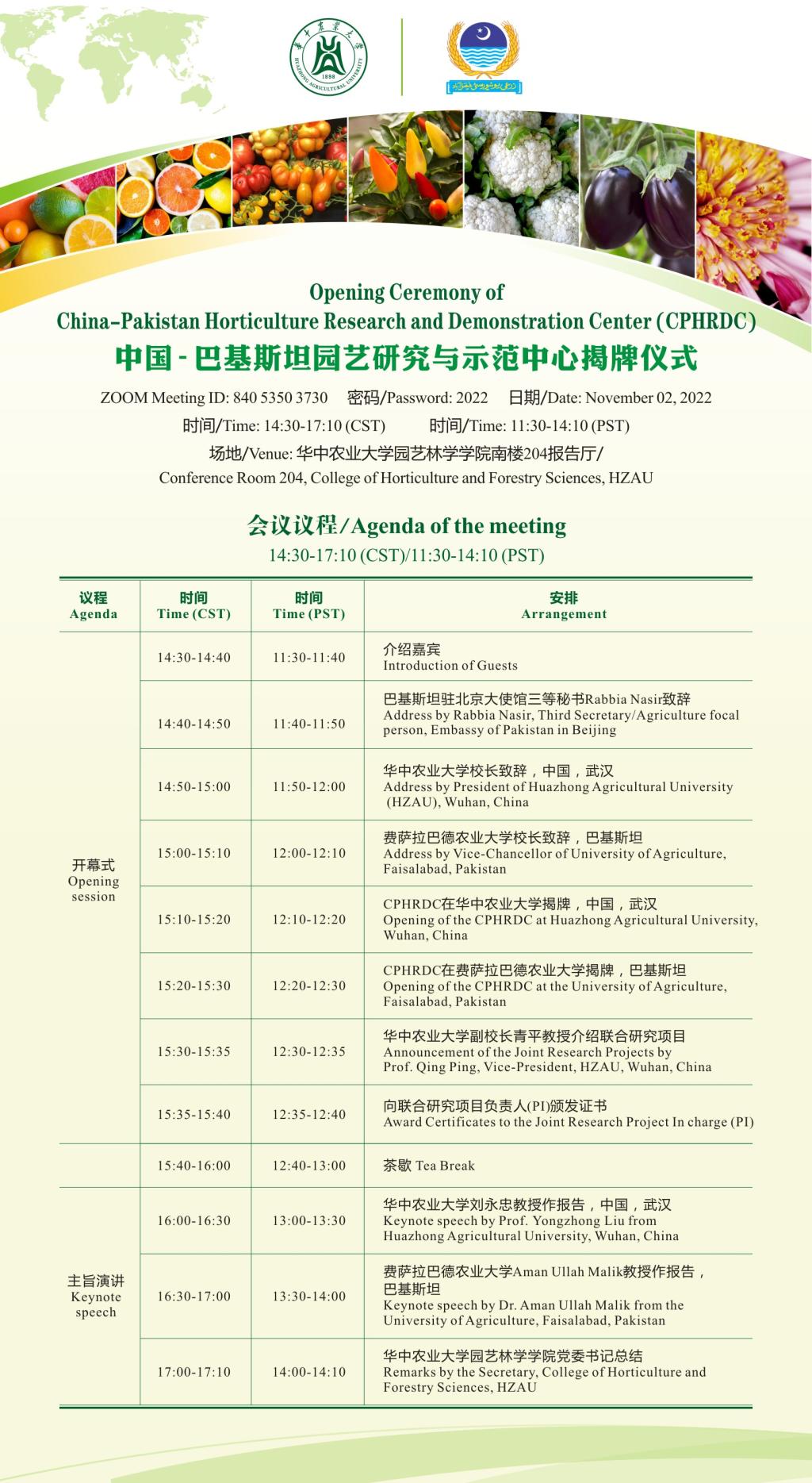 中国-巴基斯坦园艺研究与示范中心揭牌仪式