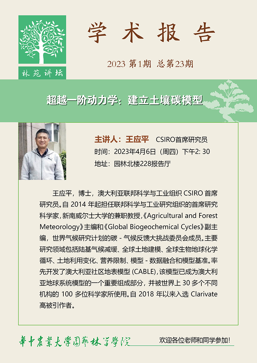 【林苑讲坛】超越一阶动力学:建立土壤碳模型