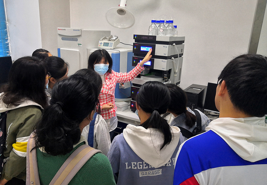 为了响应学校的防疫要求,开放日参观分批次分模块有序进行。这样一来既降低了人员聚集,也提高了培训质量。首先,平台主任屈晓璐研究员介绍了澳门十大网投正规官网平台公共平台的构成,包括细胞生物学平台、代谢组学平台、感官评价平台、植物生化平台、植物生长平台、采后生物学平台和生物信息平台等7个子平台,同时介绍了它们的预约方式、使用方法和注意事项。随后,各位分平台的管理老师,带领不同批次的同学,顺次参观了平台的设备和设施。细胞平台的屈晓璐老师为大家讲解了多种光学成像系统和组织切片系统在细胞学研究上的应用及实验注意事项;代谢平台的仲林林老师和秦玉娇老师依次向大家介绍了各类气相色谱、液相色谱、气质联用仪、液质联用仪等仪器的工作原理、操作流程以及它们在物质的定性定量发挥的重要作用;植物生化、植物生长平台的石春梅老师介绍了非接触超声破碎仪、蛋白纯化仪和蛋白定量分析系统在核酸蛋白水平的分离和检测上的应用。整个平台介绍过程中,同学们纷纷针对自己感兴趣的仪器提出了一些问题和感受。