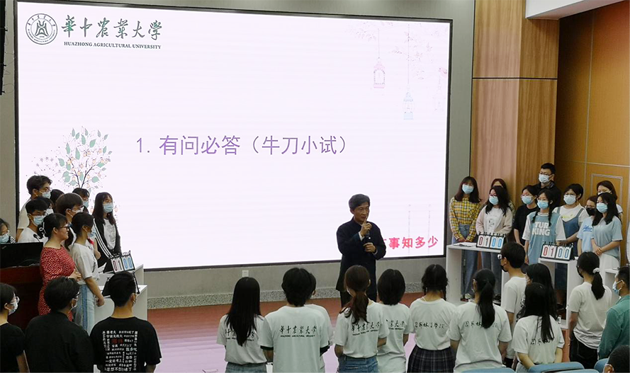 校党委书记高翅老师亲临现场指导并开题。高老师指出:“今天是个特别的日子,世界生物多样性日,今年的主题是呵护自然、人人有责;很不幸的是,袁隆平先生仙逝了,而对他们最好的纪念就是我们加油”。接着高老师由“艺”字的甲骨文引出“劳动创造美,生活是艺术的源泉,我们的专业是这个世界上最美的专业,你们干的是最棒的事”。高老师教导同学们“在学习花卉学的过程中,除了生命特质之外,还要特别注意把握植物的美学特质、空间特质以及文化特质”。