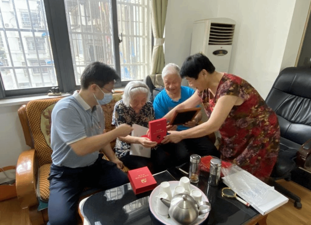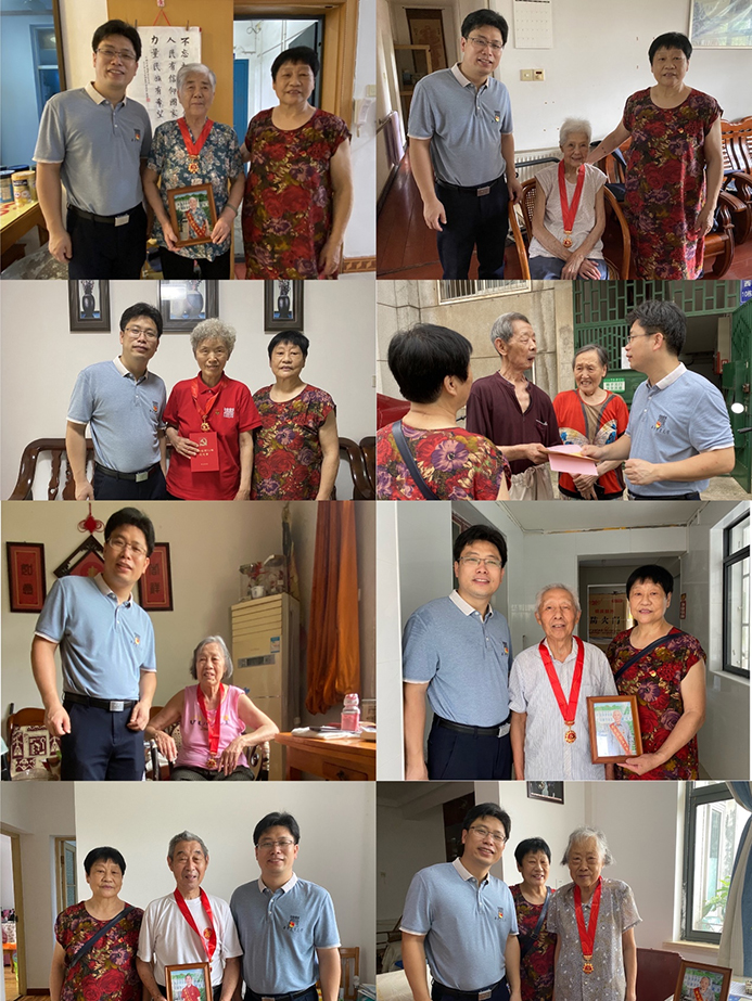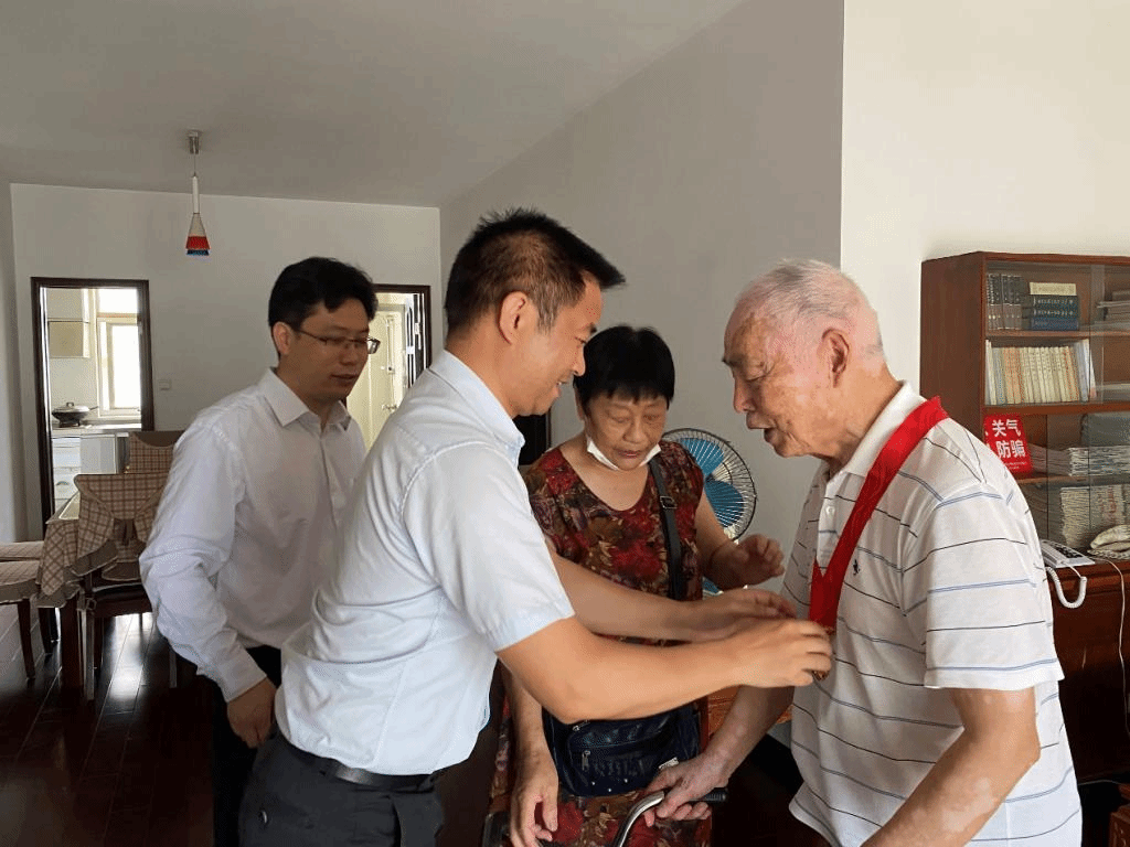 在走访慰问过程中,学院党委书记张宏荣亲切询问老党员们的身体和生活状况,转达党中央、校党委、院党委对老党员们的关心问候,并为他们佩戴“光荣在党50年”纪念章。