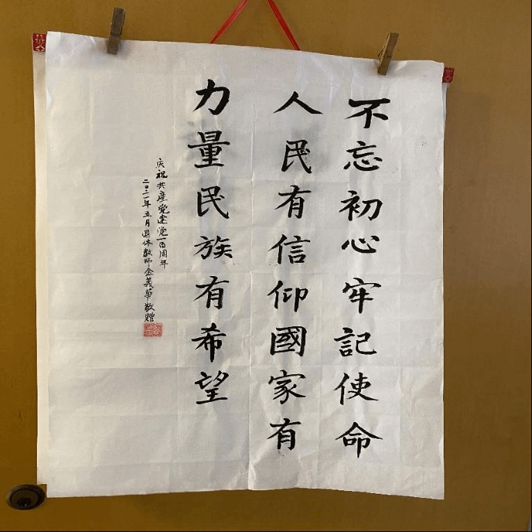 老党员金义华献礼建党一百周年书法作品(孟悦 摄)