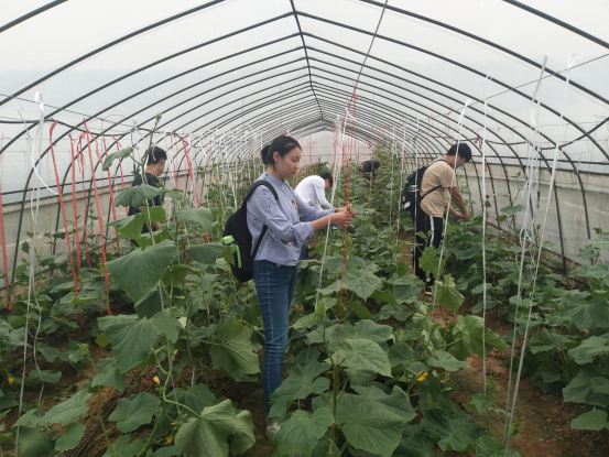 2019年10月10日下午,设施党支部在校内花卉基地开展了专业特色活动,支部成员首先在王文恩老师的带领下参观了基地内正在建的大棚,并学习了一些关于大棚建设的知识,接着进入大棚内进行了黄瓜的整苗、去侧枝工作。