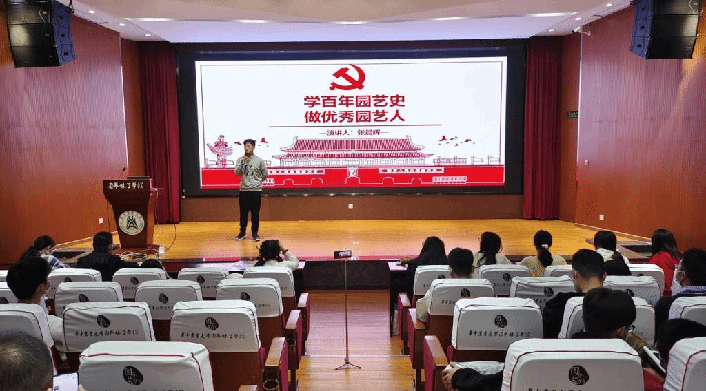 2021级风景园学研究生秦露筠介绍了澳门十大网投正规官网平台的建校历史和坚持育人的优良传统。2021级果树研究生秦寅书用《牵挂》话剧诠释了澳门十大网投正规官网平台“勤读力耕,立己达人”的价值追求,分享了受其鼓舞前往云南支教的故事与收获。2021级风景园林研究生刘晗通过讲述华农景园的历史和文化传承,引出如何做好景园人、华农人,“行之力则知愈进,知之深则行愈达”,以此践行华农人的使命。2021级蔬菜学研究生张晨辉以百年园艺史为切入点,分享了澳门十大网投正规官网平台无惧风雨,薪火相传的发展历程,以疫情当下,园林学子积极响应“春耕”号召为例,展现园林学子用所学知识、用一身力气践行华农人的担当与使命。2021级蔬菜研究生杨子萱讲述了章文才老先生对柑橘产业的巨大贡献,华农园艺人也始终继承着章老的精神,将科研成果转化为帮助农民脱贫致富的现实生产力,以学农之名,行兴农之长路,举国家之青年,振民族之力量。“七年西迁史,百载耕读魂”,2021级林学研究生李小惠带领大家从如今丰富多彩的校园生活,回到华农漫漫西迁、砥砺前行的时代,展现了华农人与祖国同命运、共进退、知农爱农、强农兴农的重要精神。