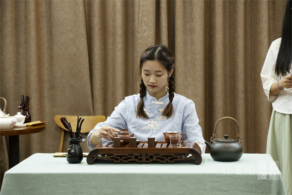 会议伊始,茶文化协会曹雅婷等同学带来了精彩的茶艺表演。她们表演了华农红韵与乌龙茶的冲泡,与在场诸位共享寒夜里的一份温暖与愉悦。茶道种种,茶趣无穷,幸品一道,回味悠悠。
