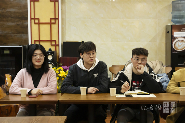品茶结束后,会议就如何提高学生工作氛围与积极性和如何以团委各部门为媒介加强师生融乐两个方面展开了激烈的讨论。会议指出,要激发学生的工作积极性,需要建立良好的成效反馈机制,形成“主动干、积极干”的良好工作氛围,通过一定的工作成效奖赏,充分调动学生干部主观能动性,借此以提升工作完成质量,提高工作完成效率。会议提到,现阶段团委各部门作为媒介举办了若干活动来促进师生融乐的进程,如师生羽毛球赛、共跑南湖活动等。大家一致认可这类活动的开展效果,并就活动开展的数量、质量等达成了共识。