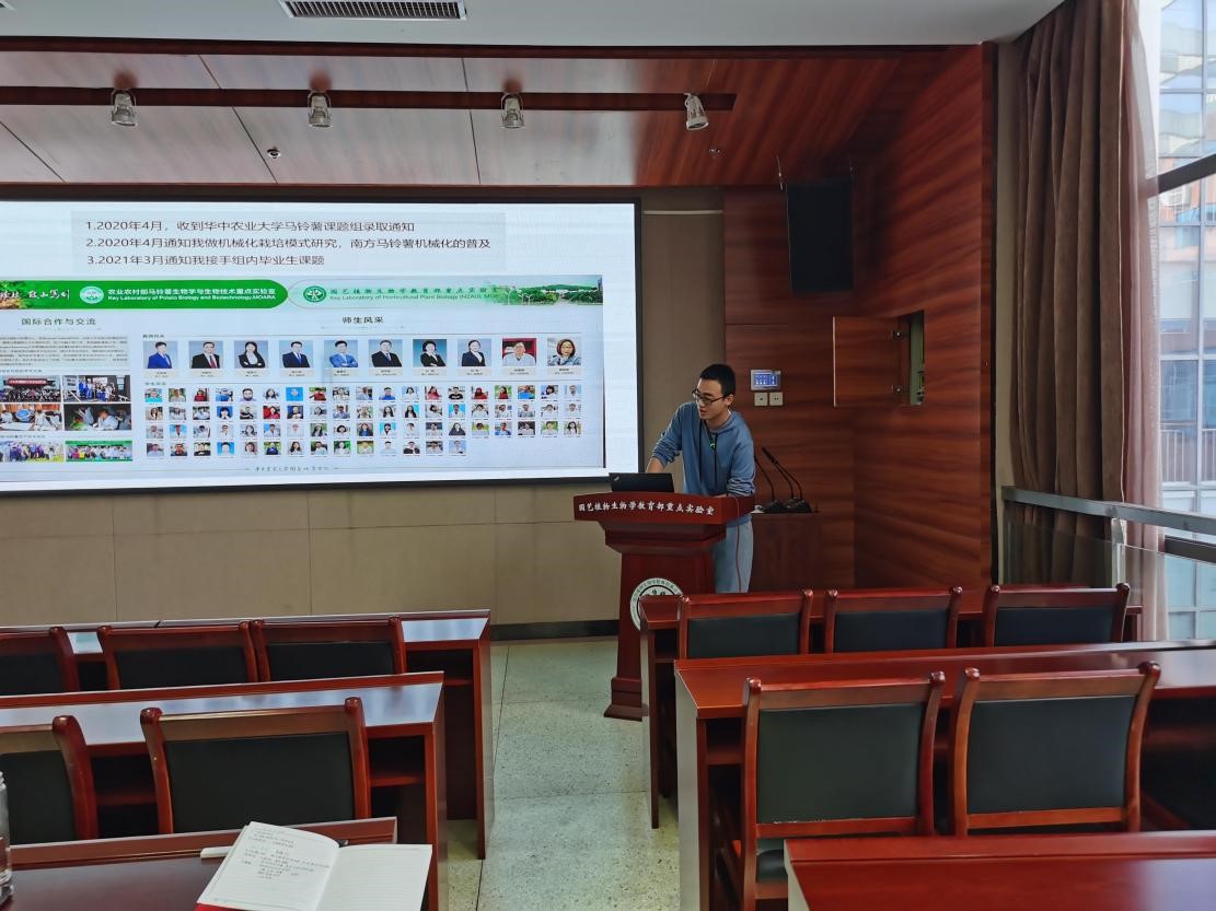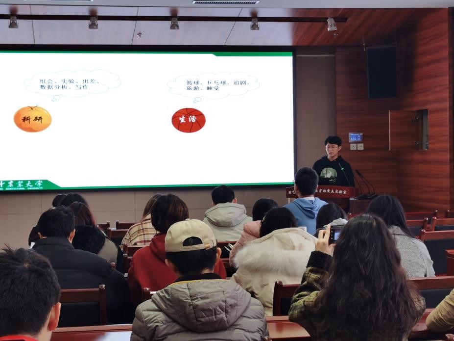 12月4日中午,澳门十大网投正规官网平台党员360研究生党支部同蔬菜学研究生第四党支部开展主题为“聆听榜样科研故事,领悟我党初心使命”的党日活动。会议由党员360研究生党支部副支书王清伟同志主持。会议邀请了研究生陈雪玲、毛桑隐、王清伟三人分享他们的科研故事。