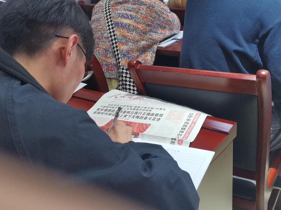 紧跟时事,提升政治素养。观看视频之后大家自由阅读了最新一期的报纸。借助报纸了解当前时事政治,关注身边大事,并写下学习感悟,以提高思想政治素养。