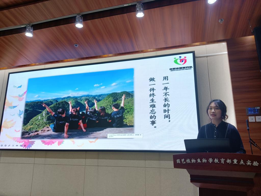 王萌茜以“我为何要来,我能做什么”为开场讲述了她在湖北恩施建始县官店镇摩峰中心小学的“支教是我的梦想”的故事,通过图片和视频的方式再现了她支教一年的生活,这一年和孩子们在挑战与成长中前行,有沉甸甸的责任感,站在讲台上授业解惑的神圣感,更有少年执甲所向披靡的无限干劲,这更是当代青年大学生不忘为党为国为民的初心,实现自身价值、挥洒热血青春。她们不仅仅作为支教老师教书育人,更在传授知识的同时,在孩子们的心中种下美好的种子,让他们心怀梦想继续努力,走过阡陌,走出大山,走向世界。