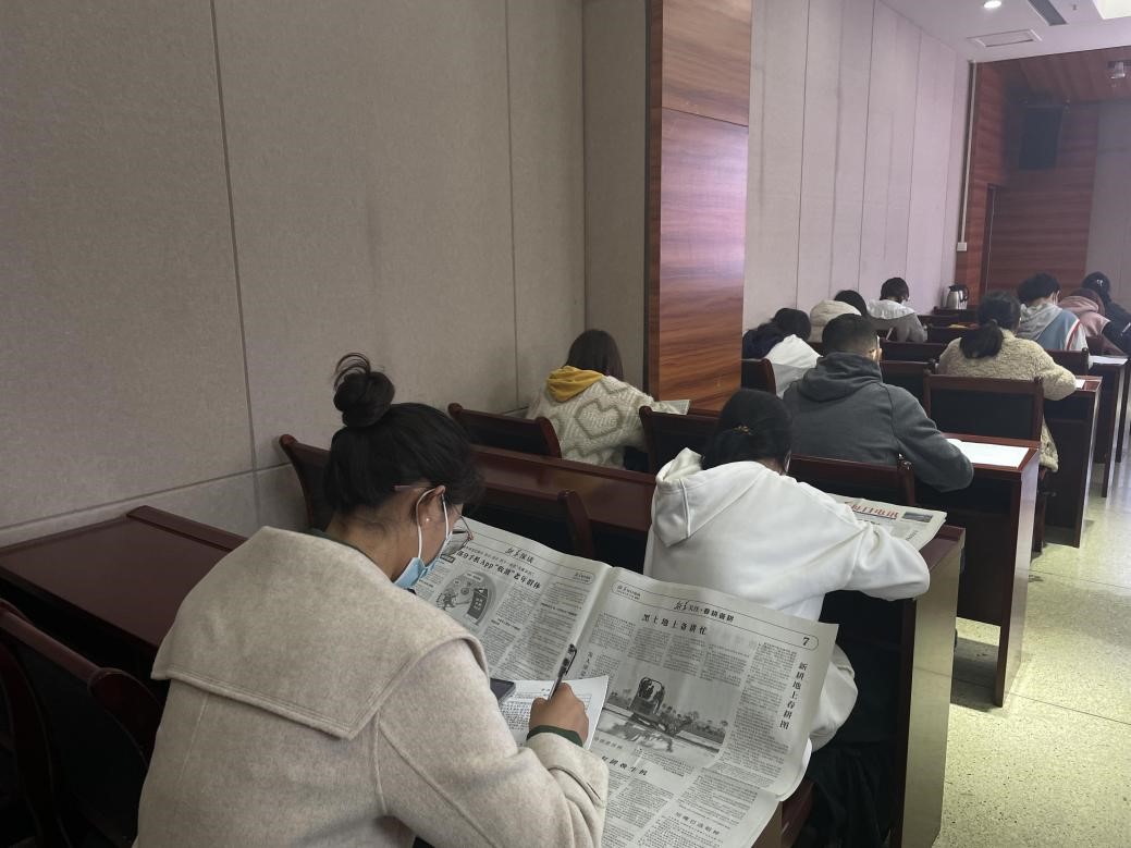 读报环节,同学们认真阅读了发放的报纸,了解时政新闻,学习相关知识。