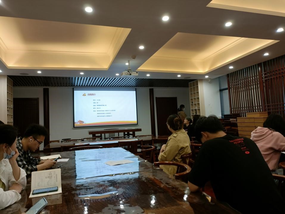 会议伊始,三名候选人先后进行汇报,周敬涛同志首先从自己的理论学习、学业学习、科研成果、社会志愿活动四个方面进行自我介绍,他同与会成员讲述了自己的入党动机,未来规划与自身的优缺点。王文风同志在进行自我介绍时,谈到了疫情期间在家乡做抗疫志愿者的故事,并深刻总结了自己现阶段存在的问题。张荣祥同志重点反思了自己的缺点,包括遇事不果决,不擅长与人交流,不喜欢记录,在思想理论上不愿意下苦功等,也表示今后会努力改正这些问题。