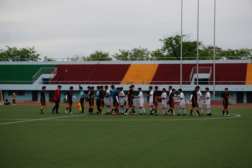 比赛结束双方队员击掌致意(通讯员 覃语祺 摄)