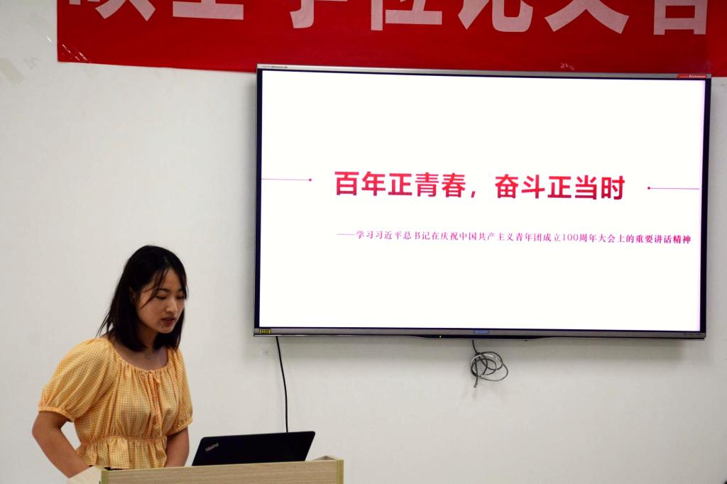 本次党日活动的主题是学习习近平总书记考察中国人民大学发表的重要讲话和习近平总书记在庆祝中国共产主义青年团成立100周年大会上的重要讲话。会上,伍依芳同志带领大家观看新闻视频,并以PPT的形式向大家介绍了习近平总书记重要讲话的主要内容与精神,呼吁大家认真学习并做到“知行合一”。伍依芳同志谈到,我们要认真学习习近平总书记的重要讲话,践行“把对祖国血浓于水、把人民同呼吸共命运的情感贯穿学业全过程,融汇在事业追求中”。