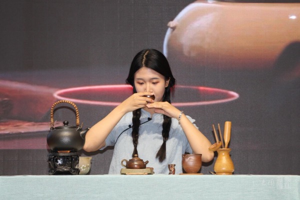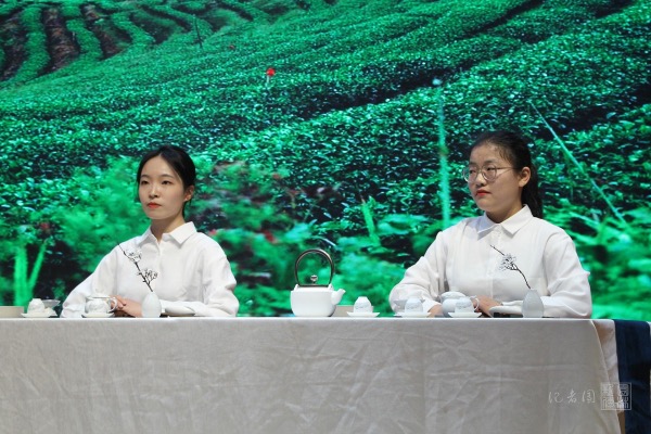 何为茶人?如何成为茶人?高天乐、王晓彤、于昕彤、宋震宇的《追溯•传承》带给了我们答案:爱茶之人,皆为茶人。表演展现了在两位茶学系学生的追寻中,一位茶学界的先生跨越时空来到古茶树下,以利川红茶为例向两位学生讲述了“茶人”二字的含义,使她们坚定了传承茶人精神的决心。黎依琪、雷蕾、何媛媛、余梦萍、陈利侠、胡怡馨的《茶香千年》以神农尝百草一幕开场,陆羽、李清照和庄晚芳等人穿越时空,与神农氏相聚于林间。古筝声徐徐,茶叶香悠悠,几位茶学界名家一齐赏识茶具、观赏佳茗。宴罢宾主欢,筝声戛,茶香留。