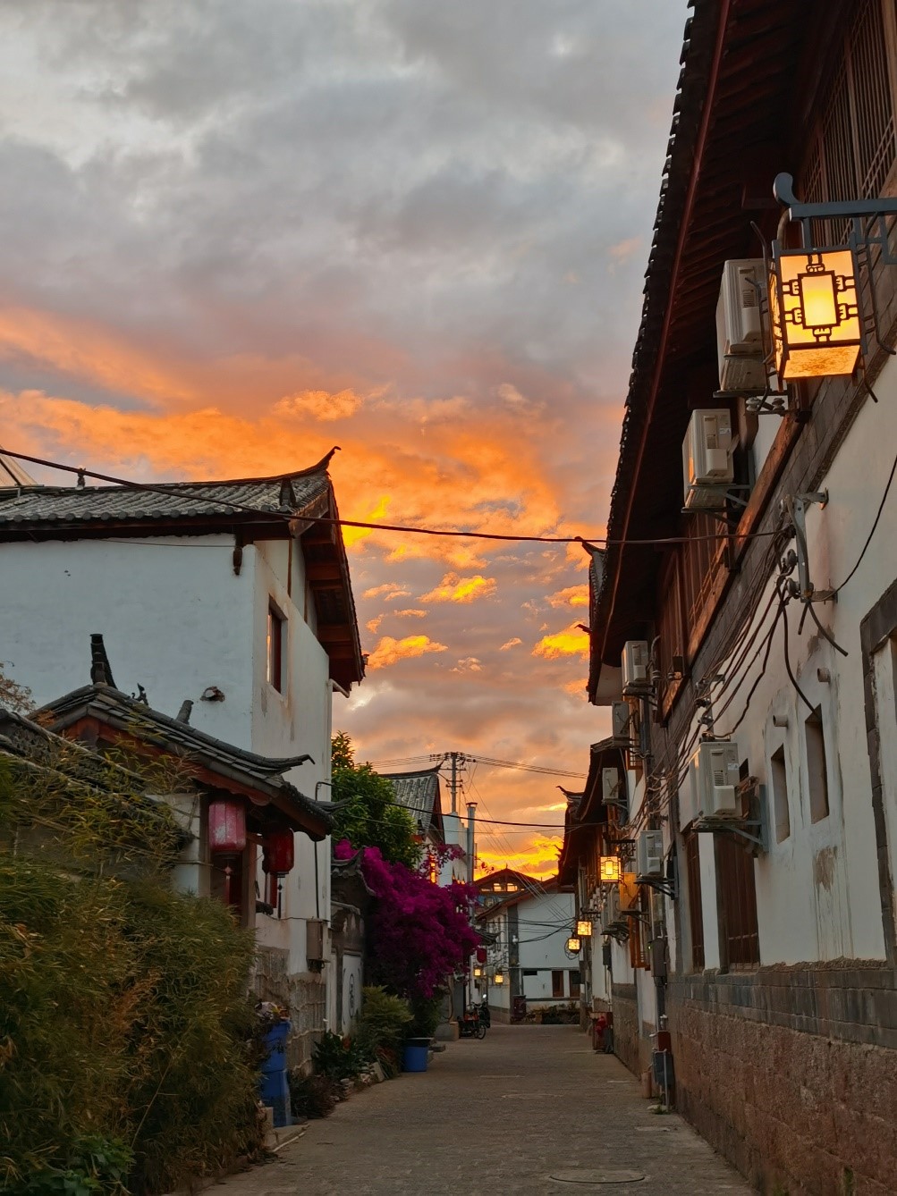 一日之计在于晨,这是清晨六点于云南丽江古镇拍摄的“晨曦与云”,层层叠叠的云包裹着透出来的暖光,天空夹在建筑间,随着光线跑入镜头,半边虽是沉闷阴暗、半边却已红霞满天。