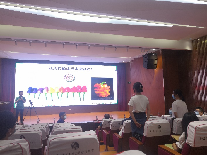 周继荣向师生讲述了环境与安全工作的三重境界,一是法,表示学院会对工作室进行依规治理;二是德,表示要以德化人,师生要习德、养德和弘德;三是道,表示要行道圆融,要将安全管理融入生活方式,融入师生品格。