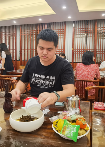 随后,在赵潇懿和王淑腾的讲解下,同学们纷纷开始动手尝试泡一壶茶。茶香缥缈,沁人心脾。清香微苦的茶汤配上极具华农特色的月饼,在场的33名2022级研究新生在园林院度过了极具园林特色的中秋之夜。“因为疫情无法归家,但是能和新认识的伙伴一同在此品茗赏月,也是非常值得回忆的美事,我相信很多年后回想起来,我依然会感到幸运和幸福。”家在内蒙古的22级新生马驰说到。