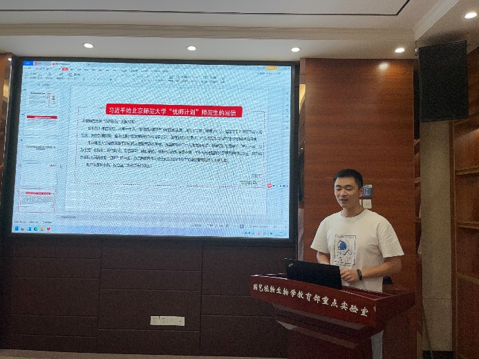 随后,与会党员围绕习近平总书记给北京师范大学“优师计划”师范生回信精神分享了学习体会。2020级果树学硕士研究生李港秋结合自身成长经历谈到,现今教育资源失衡严重,农村贫困地区缺乏优秀教师与优质教育资源,很多师范生毕业后,不愿去农村任教,作为涉农高校的研究生,要把强农报国使命担当落实到学习、研究中,真正做到学以致用。