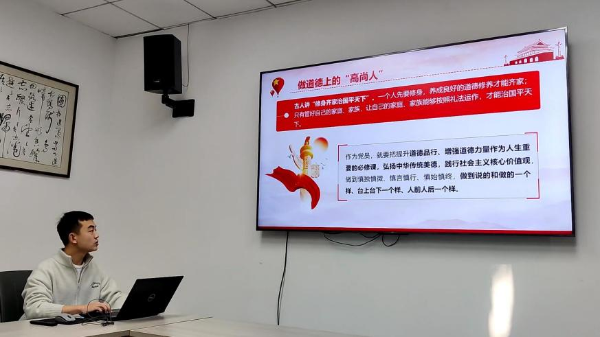 在此次会议中,陈帅朋同志为主要汇报人,他从过去五年的工作和新时代十年的伟大变革、做政治上的”明白人”、做道德上的”高尚人”、做事业上的”开拓人”四个部分进行汇报,号召大家作为新时代青年要坚定永远听党话、跟党走的理想信念。