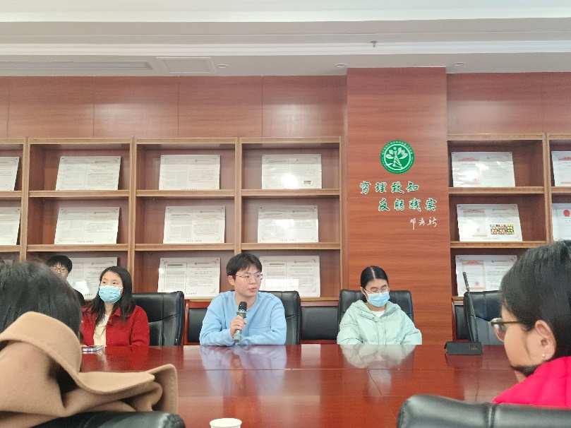 随后,各参会研究生依次发言,就目前的就业进展、面临的就业问题以及后期的工作规划进行了阐述。漆晓龙表示,目前已有中国中铁的意向offer,也在林之源(北京)林业工程咨询有限公司有过实习,接下来还将准备参加省考。了解到研究生们有较强的考公考编的意愿,蔡江书记表示,同学们应当积极了解相关政策,多了解一些地方县市的人才引进政策,同时也要积极向企业投递简历,多多参与企业来校的宣讲会。