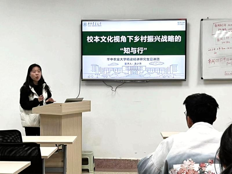 3月2日晚,果树学研究生第一党支部在南楼521会议室开展了党的二十大精神宣讲活动,研究生“精读精讲”宣讲团成员李小惠以“校本文化视角下乡村振兴战略的‘知与行’”为题作报告。