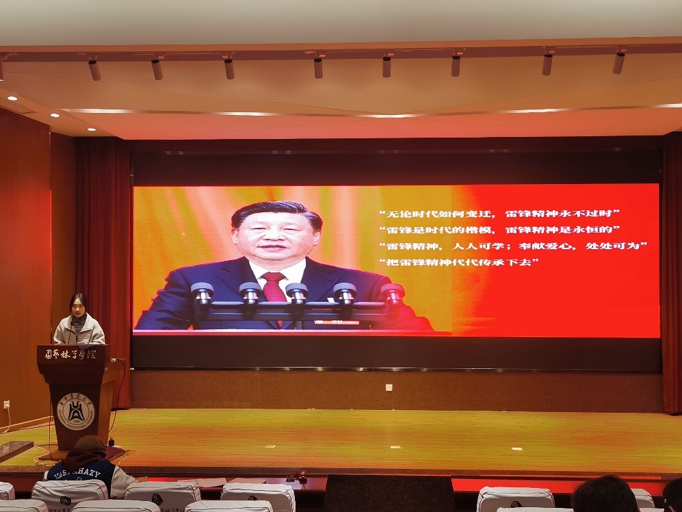杨子萱同志以若干实例展示了雷锋精神的基本内涵,“雷锋精神,人人可学;奉献爱心,处处可为”,这句话点燃了许多同学心中的小小火苗。若干年如一日,杨子萱所讲述的坚持无偿献血的郭明义,在大山里的孩子们心中播种的支教老师袁辉等例子,都深深感动着在场的同学们。杨子萱同志还以自身经历举例,讲述了本禹志愿服务队研究生支教团的奋斗故事,激励同学们用青春谱写时代华章。