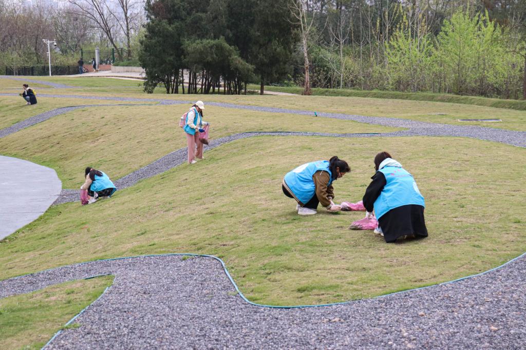 迎着和煦的春风,生机勃勃的乐乐园在游客如织的忙碌中,迎来了一群“蓝马甲”的身影。3月25日上午,张瑜服务队组织16位志愿者来到乐乐园,对春日破土而出的杂草展开了清理行动。