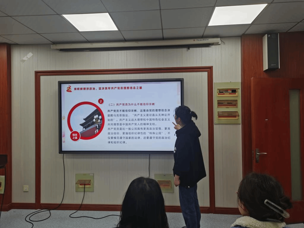 会议伊始,李茜同志带领支部党员深入开展党员不信教的学习,并从多方面阐述共产党员不能信仰宗教的原因与意义,进一步阐明允许党员信教带来的多种严重后果。支部党员展开讨论,表明身为党员要旗帜鲜明讲政治,坚决筑牢共产党员理想信念之基。