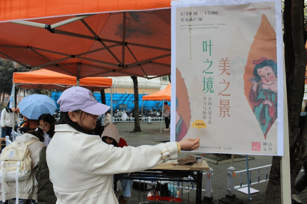 3月21日下午,由风景园林研究生第一党支部主办的“叶之境,美之景”校园文化立项活动在荟五小广场举行,吸引了来自澳门十大网投正规官网平台、生命科学技术学院、信息学院、文法学院等不同专业的本科及研究生参与体验。