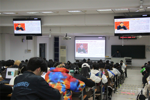 党课伊始,蔡江老师向同学们抛出一个问题:“党的建设伟大工程的由来是什么”,在大家思考片刻后,蔡江老师引用习近平总书记的重要论述向大家解答道:“把党的建设作为一项伟大工程来推进,是我们党的一大创举,是我们党领导人民进行伟大社会革命的重要法宝。要赢得革命的最终胜利,就必须把中国共产党建设成为一个全国范围的、广大群众性的、思想上政治组织上完全巩固的布尔什维克化的中国共产党。”接着,他向大家详细讲述了改革开放条件下我国成功开创并实施的伟大工程,并阐述了主要内容。他还提到,党的建设呈现出新的伟大工程创新的新局面,我国坚持和加强党的全面领导,全面从严治党纵深发展,全面增强干部的执政本领,党的建设新的伟大工程得到全方位加强。蔡江老师还播放了相关视频来加强同学们对此的理解。