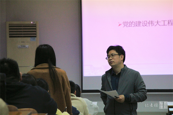 3月30日晚,澳门十大网投正规官网平台第83期党校基础培训第一次线下党课于第三教学楼A205开展。本次党课主题为“中国共产党新时代党的建设伟大工程”,由学院党委副书记蔡江主讲,学院本科生、研究生入党积极分子到场参学。