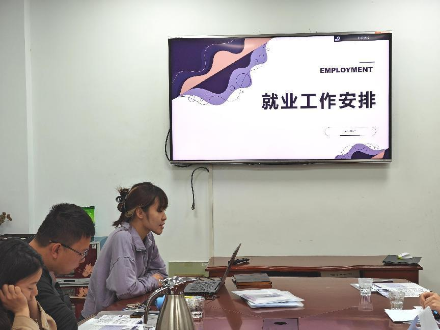 随后,职业发展中心负责人戚汉朝以“如何开展班级就业工作”为主题,提出了创造良好就业氛围、提前了解就业政策和主动锻炼求职技能三个具体工作要求,希望同学们积极主动寻找适合自己的就业方向。班级委员们就通过前期调查获得的班级同学就业意向进行分享,所有班级的共同点是对于毕业后的职业发展方向感到迷茫,考公考编仍是同学们毕业后的第一选择。职业发展中心负责人王苏苏鼓励大家放下对就业的畏惧心理,勇敢迈出职业生涯的第一步。