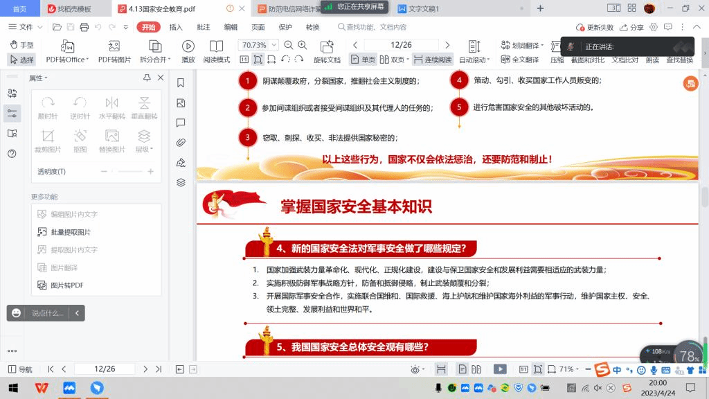 首先,王瑜向同学们介绍了什么是国家安全教育日、掌握国家安全基本知识、以及相关法律法规知识的学习。通过对真实案例的讲解,同学们认为要将国家安全观贯穿到学习生活全过程。同学们就国家安全展开讨论,纷纷表示要从现在做起,从自身做起,从小事做起,自觉抵制危害国家安全的言论和行为,为推动国家安全建设贡献力量。