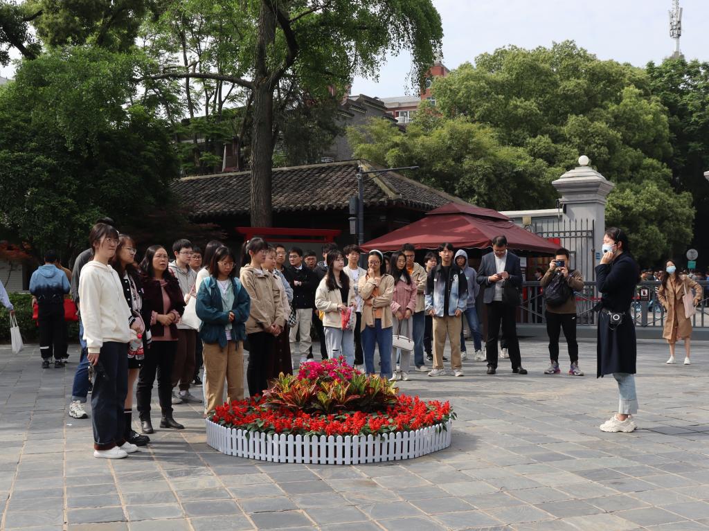 师生认真听讲解员介绍(通讯员 张扬 摄)