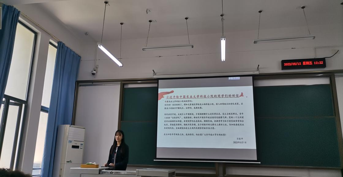 5月13日,园艺本科生党支部于四教B204开展五月份主题党日活动,支部党员共同学习了习近平总书记给中国农业大学科技小院的同学们的回信。