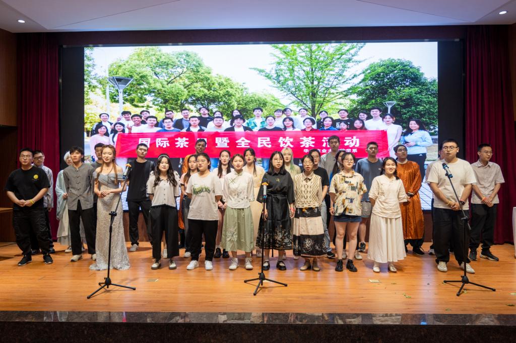 静享此刻茶香,茶艺表演《古茗新韵》为大家呈现了一场视觉和味觉的奇妙盛宴。《莫厘峰上的香气》带我们穿越到一个美丽而神秘的地方——东洞庭莫厘峰,讲述了十大名茶之一的碧螺春的诞生。而吉他与插花表演《风之诗与花》则用轻盈却不失细腻的旋律,唤醒我们内心深处的感性体验,带我们回到寂静的茶道时光。在小品《茶王争霸》的激烈比赛中,两位来自茶学的达人“卷卷”和“双双”各施所能,向大家展示了从采茶、加工到评茶的整个过程,在演员们滑稽幽默的表演和网络流行语的加持下,在场观众被逗得哈哈大笑,合不拢嘴,同时也认识到制茶是一个需要用心对待的严肃过程,其中的每一步都融入了制茶人的匠心与汗水。汉服走秀《与子同袍,茗动天下》和茶诗词朗诵及茶艺表演《穿梭千年的茶颂》让茶文化分别与汉服文化和诗词文化相融,为茶文化增姿添彩,给我们带来壮观的文化盛宴。